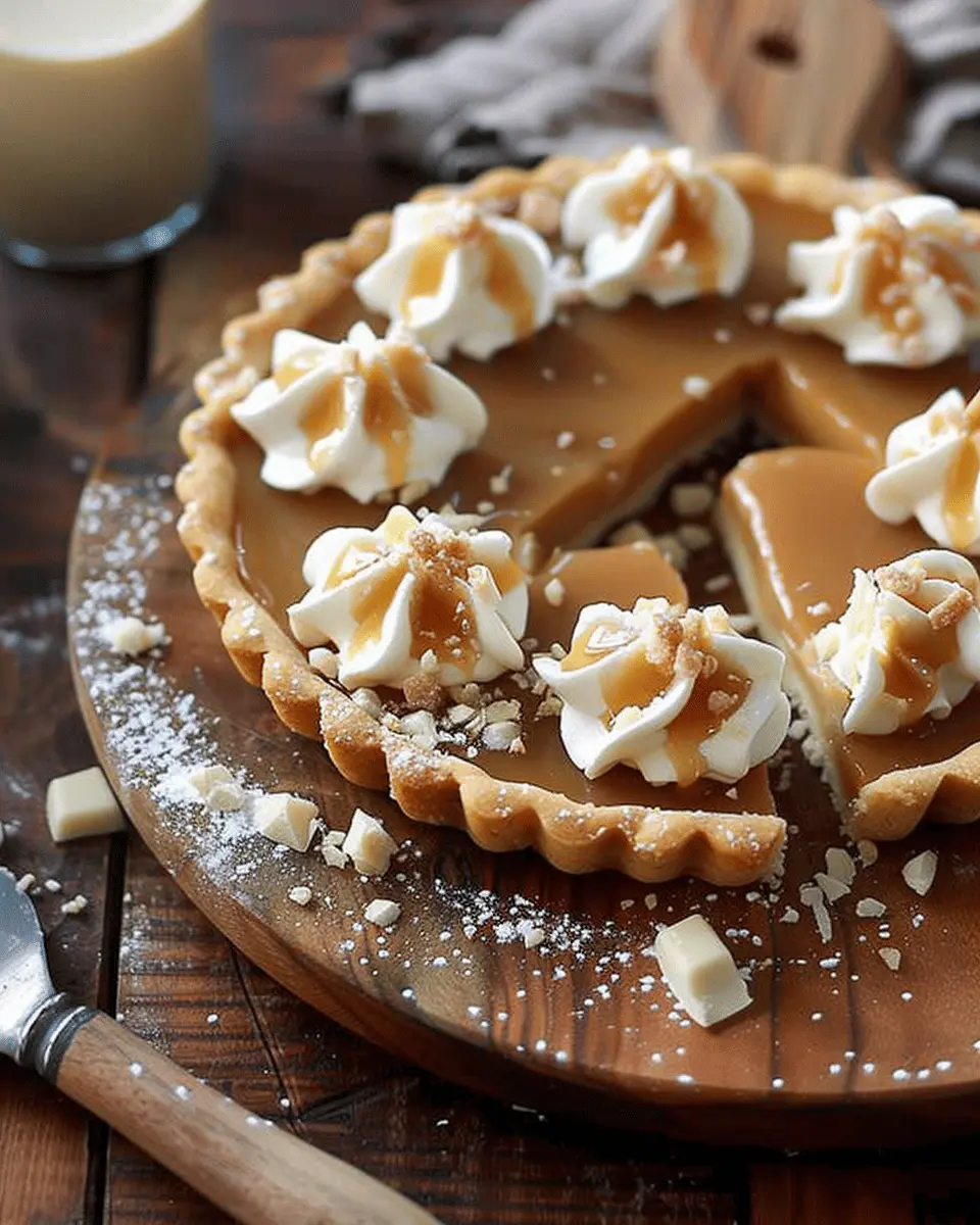 A rich and creamy roasted white chocolate caramel tart that is perfect for special occasions.