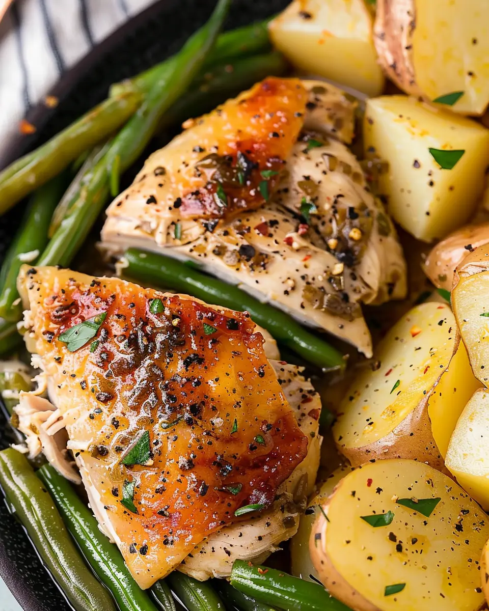 This slow cooker chicken and potatoes with green beans recipe is an easy and delicious family dinner option that requires minimal preparation.
