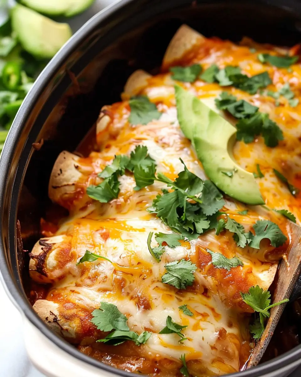 This last step transforms your slow cooker chicken enchiladas into an irresistible dish that’s sure to impress.