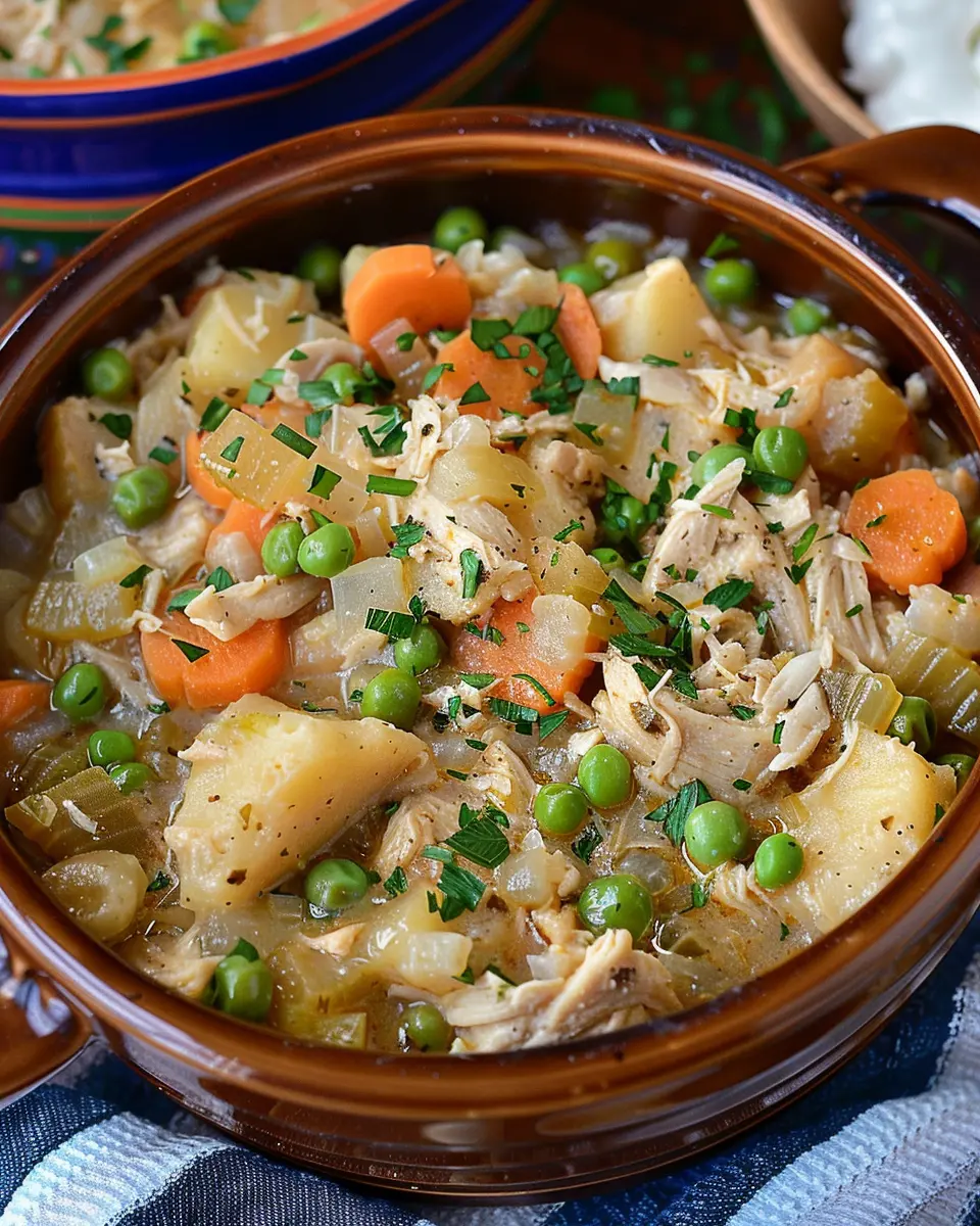 A comforting and hearty slow cooker chicken stew that’s easy to prepare and perfect for any occasion.