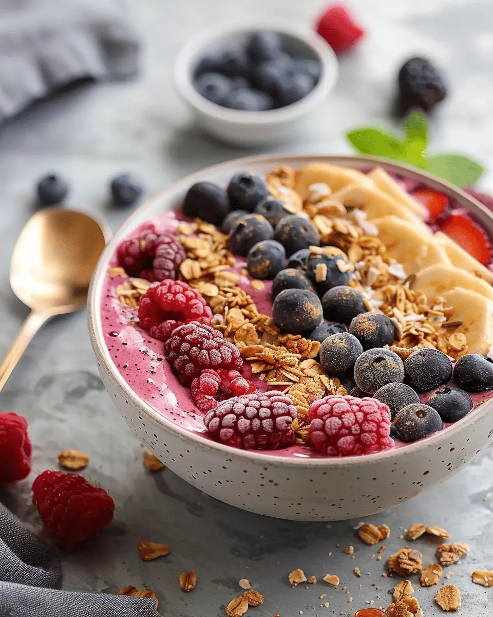 Packed with antioxidants, vitamins C and K, and dietary fiber, this bowl helps support your immune system and digestion. The berries provide natural sweetness while keeping the nutrient profile high.