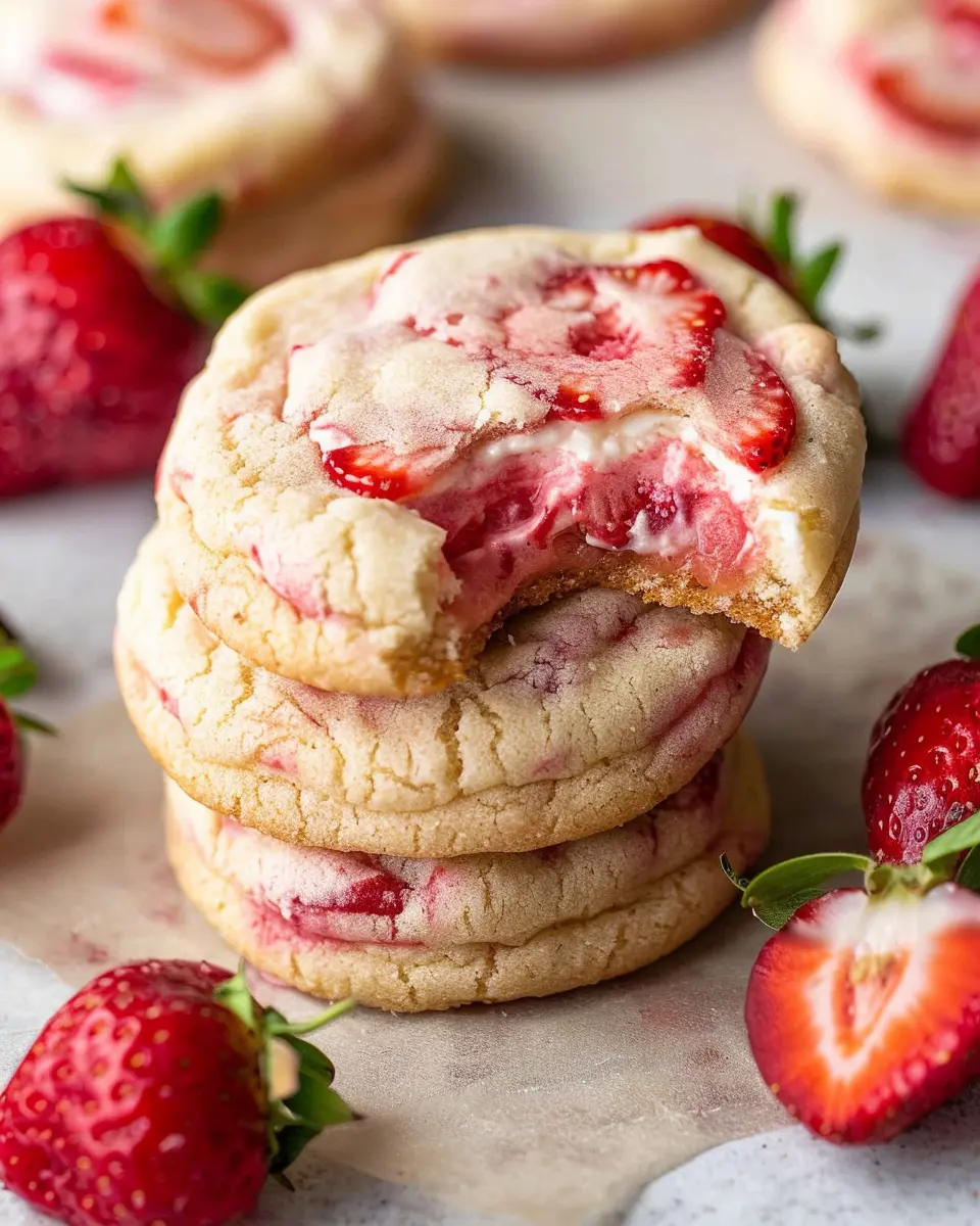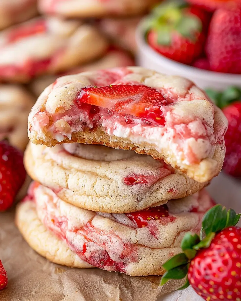 Great question! Regular cookies typically have a uniform texture and flavor throughout, whereas stuffed cookies like these strawberry cheesecake cookies have a surprise filling. This stuffing, often made from ingredients like cream cheese or fruit preserves, adds an extra layer of flavor and moisture, making each bite a delightful experience. The stuffed variety also tends to have a chewy center that contrasts beautifully with the slightly crispy outer layer.