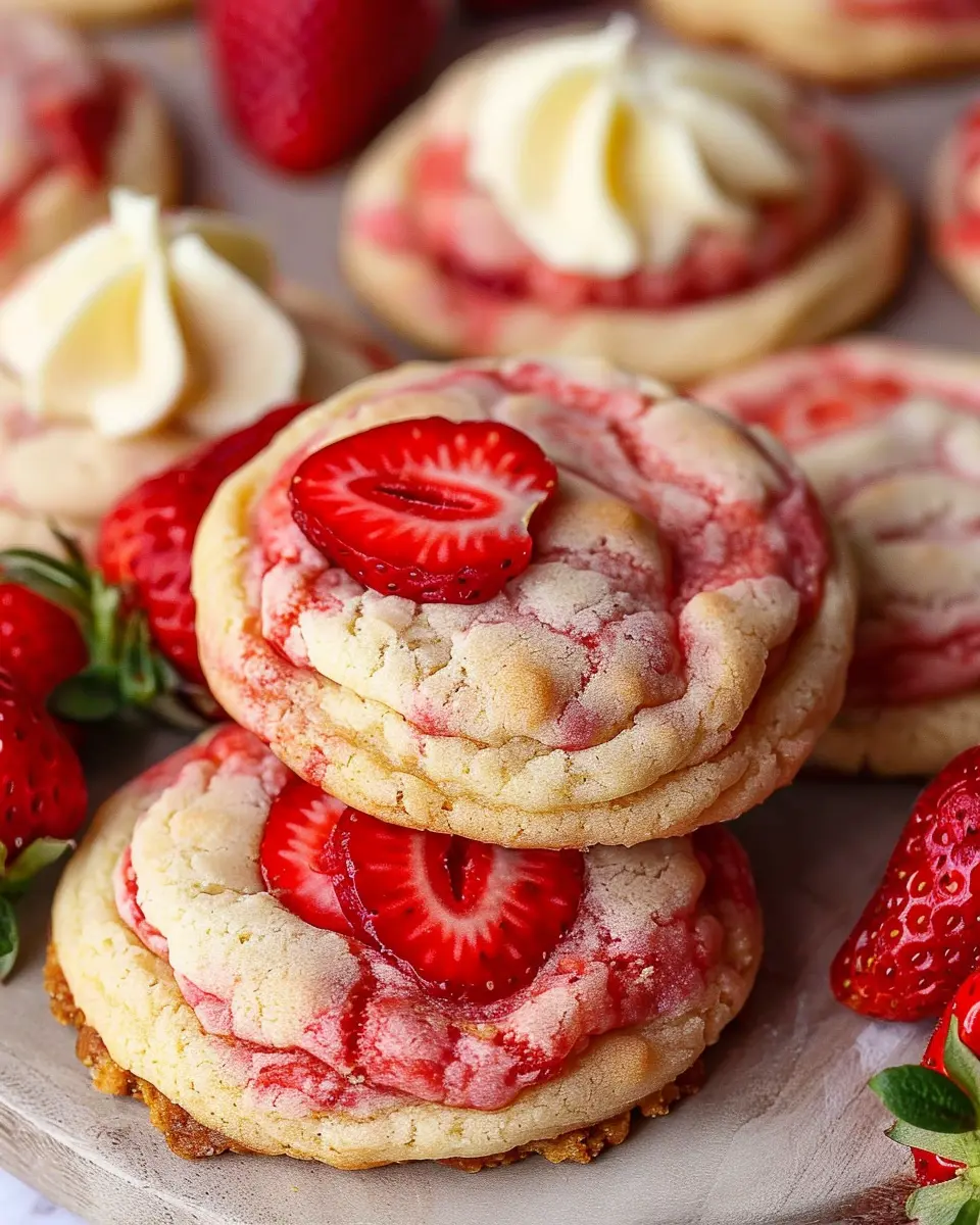 To make these strawberry swirl cookies, simply blend fresh strawberries until smooth and gently fold the puree into half of your cookie dough. Then, layer the two mixtures together and swirl them gently with a knife. This not only enhances the visual appeal but also intensifies the strawberry flavor. For a little crunch, consider adding some chopped graham crackers into the mix to mimic that classic cheesecake crust.