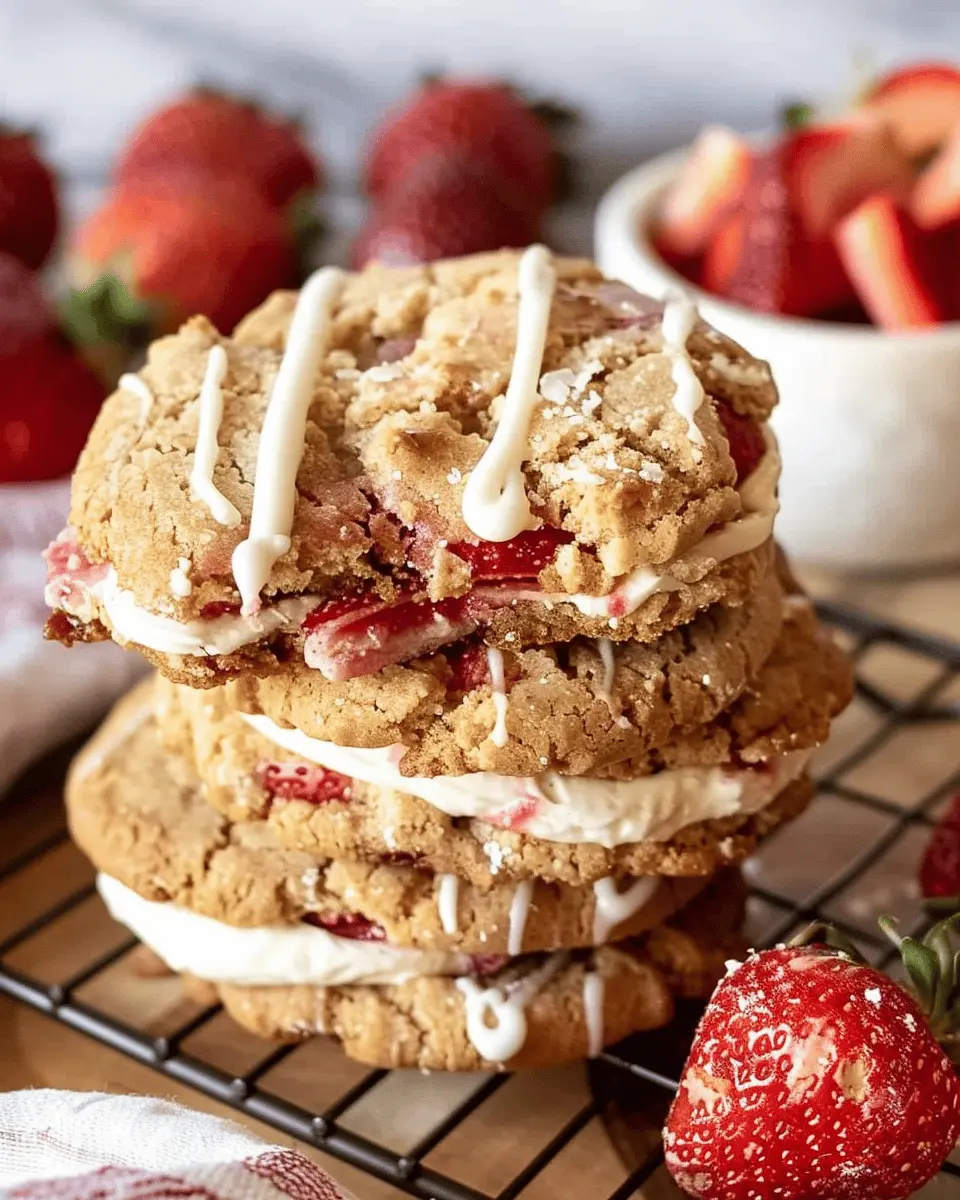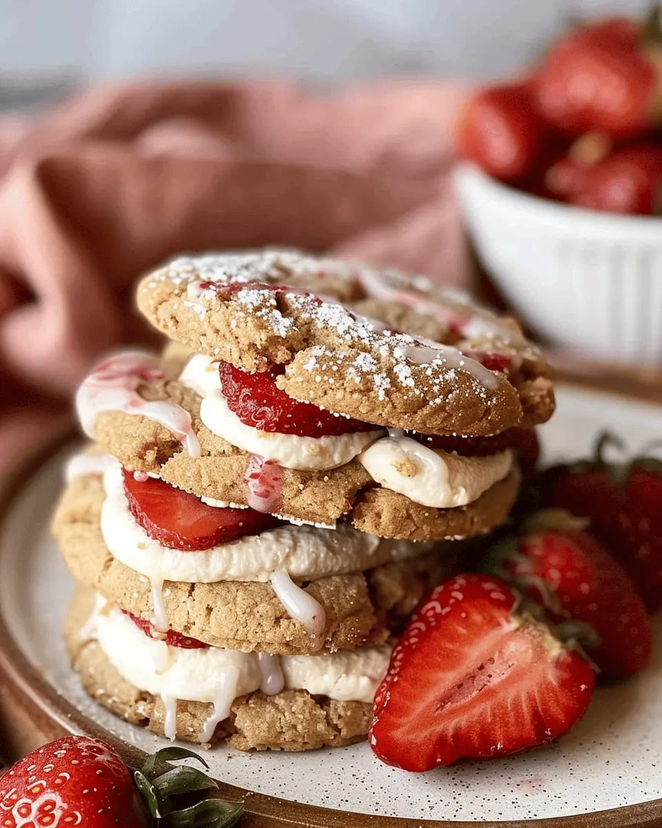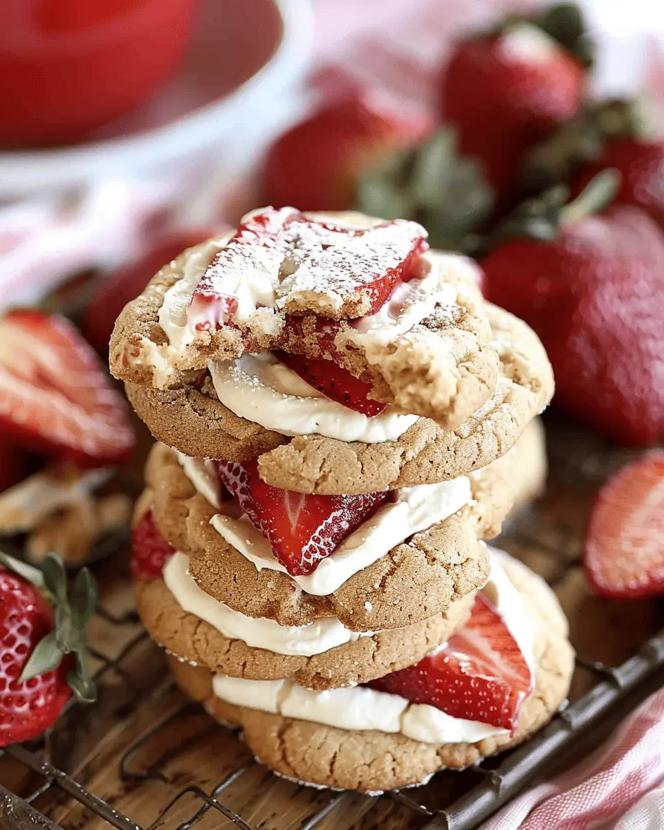 These Strawberry Shortcake Cookies are the perfect sweet summer treats, combining the rich flavors of strawberries and cream in a delightful cookie form.