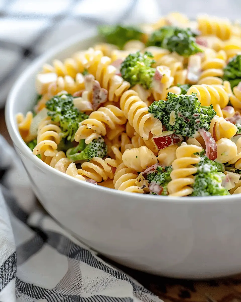 Tasty Broccoli Pasta Salad: Easy Recipe with Turkey Bacon Delight