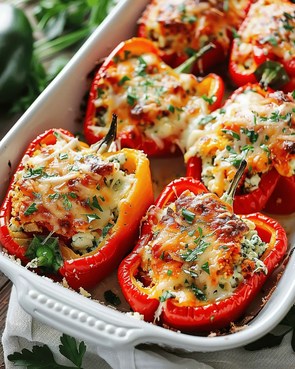 Once your peppers are stuffed and ready, pop them in the oven at 375°F (190°C) for about 25-30 minutes. This allows the flavors to meld beautifully while the peppers become tender.