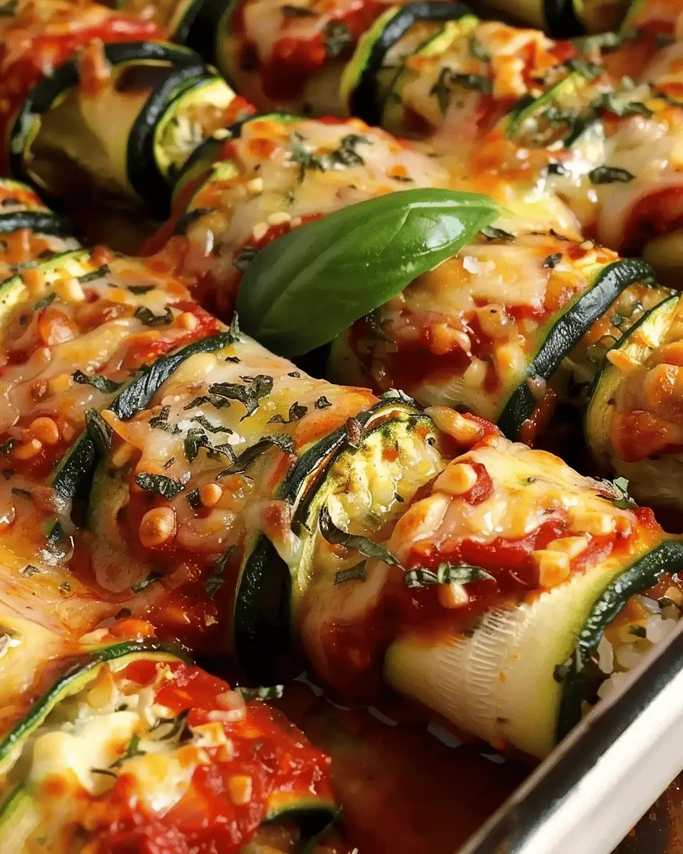 The cooking process will take approximately 30-35 minutes. You’ll roast the rolled zucchinis and allow the flavors to meld beautifully, providing a comforting, savory flavor profile.