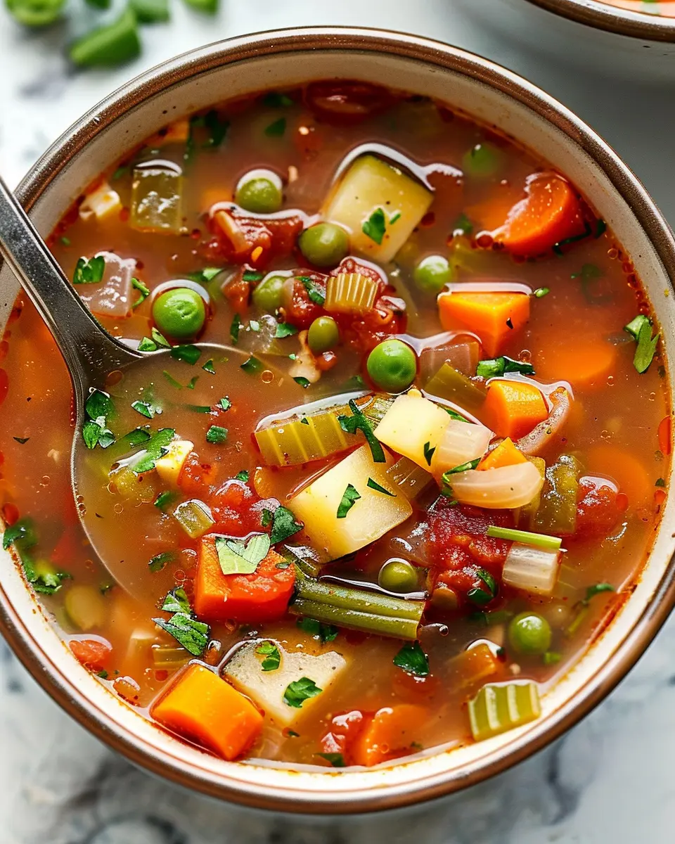 Enjoy a warm and hearty bowl of vegetable soup that is simple to prepare and perfect for any home chef.